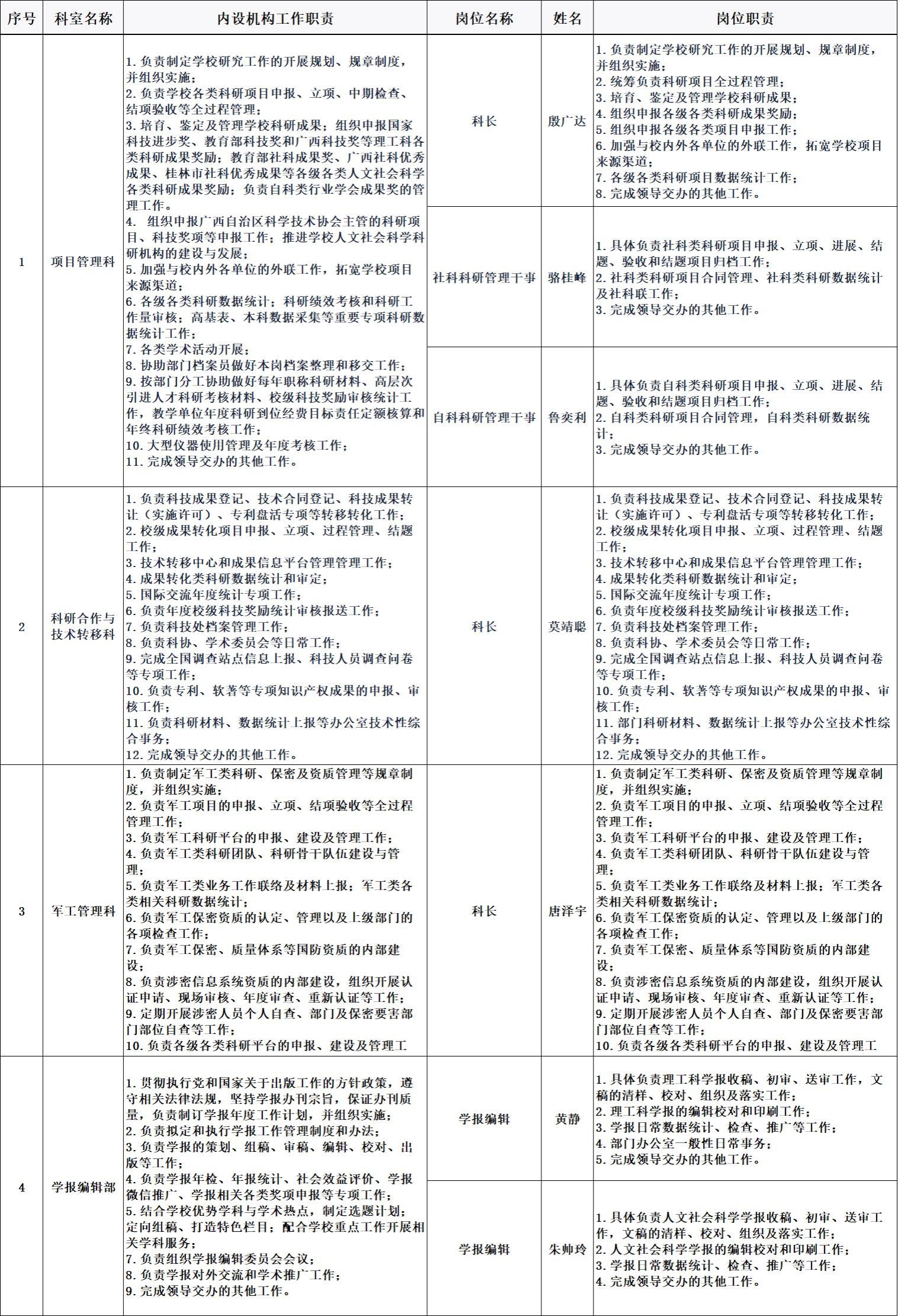 科技处各科室岗位职责及具体分工表