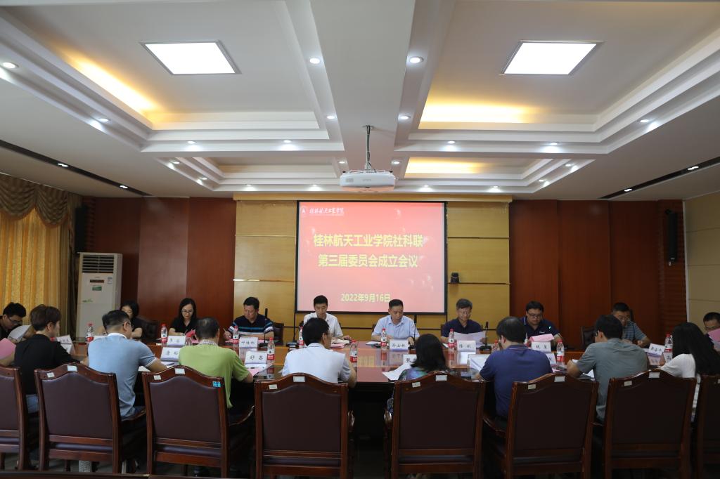 9月16日下午,伟德bv1946官网社科联第三届委员会成立会在学校南校区飞天楼517会议室召开,学校科技处处长、社科联常务副主席魏星主持会议。桂林市社科联党组书记、主席隆斌参加会议并作重要讲话。学校党委常委、党办校办主任、宣传部部长杨永昌在会上致辞并宣读委员会成立通知文件。学校副校长孙山林当选为伟德bv1946官网社科联第三届委员会主席。