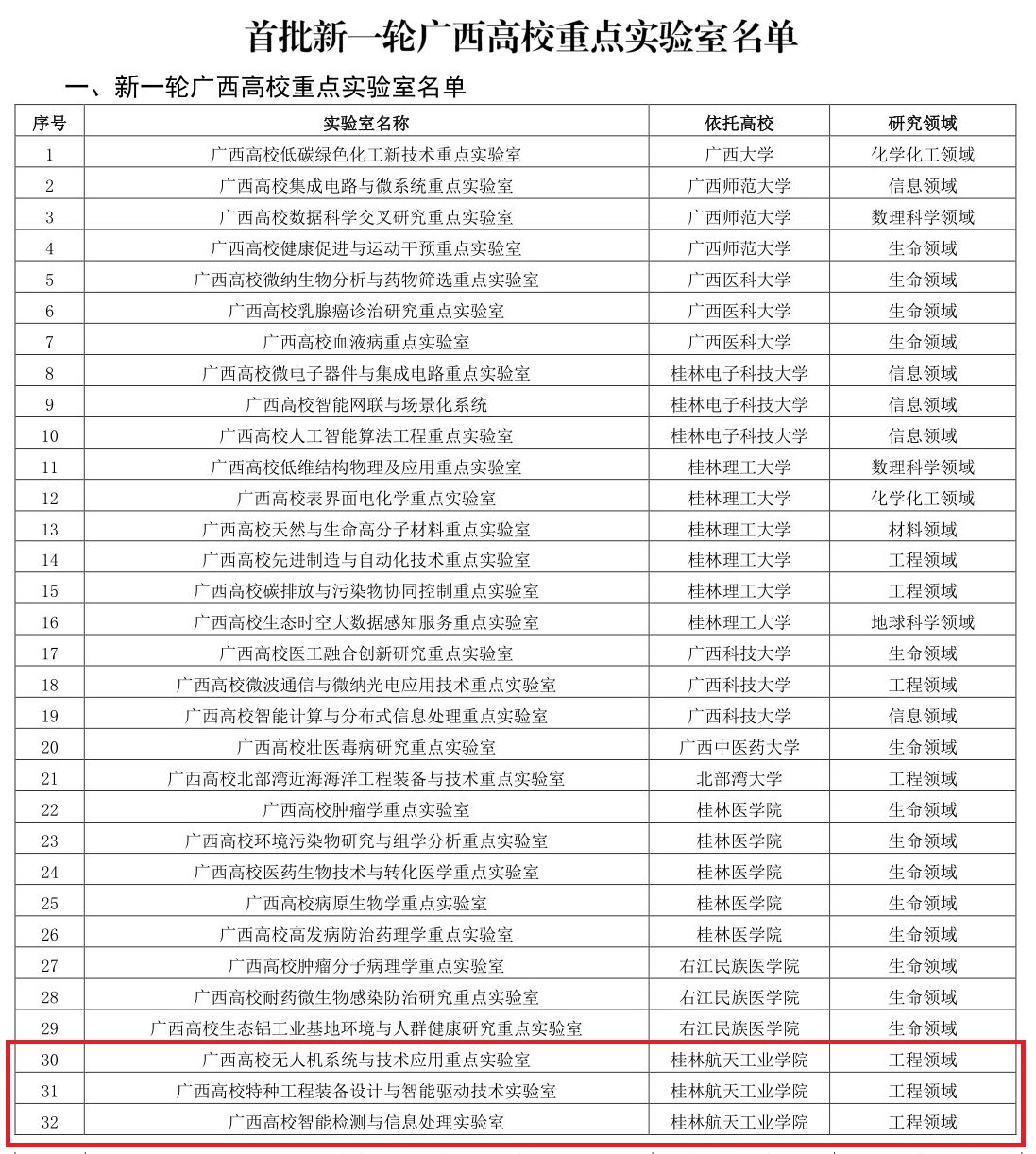 据悉,本轮广西高校重点实验室共批准立项52个,其中立项建设实验室32个,需加强建设实验室20个。
