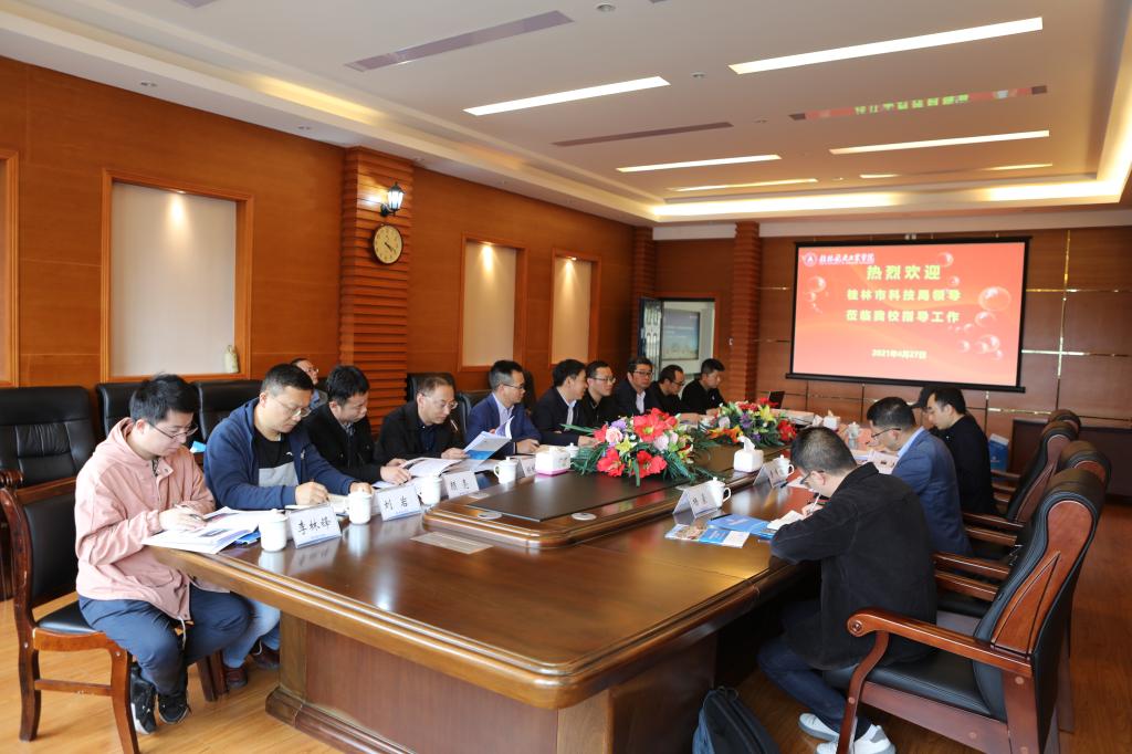 4月27日下午,桂林市科学技术局党组书记、局长张晓阳带队来我校考察调研。学校党委书记李幼平、副校长孙山林在飞天楼6楼会客室接待了调研组。