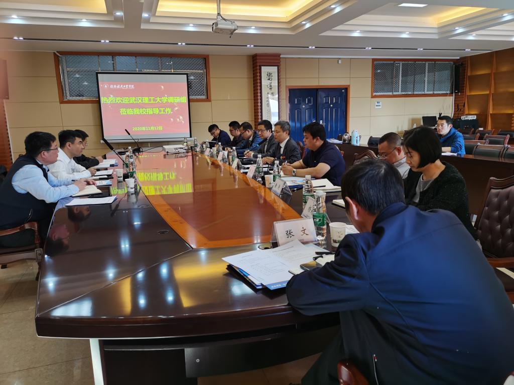 随后,调研组在飞天楼517会议室与科技处、机械工程学院、电子信息与自动化学院、汽车与交通工程学院等相关职能管理部门、教学单位领导进行了座谈。学校副校长李智参加座谈会并致辞,李智向调研组简要介绍了我校的基本情况,并着重介绍了我校的主要科技成果以及科技合作与伟德国际唯一官网入口工作,他表示,近年来,我校很重视科技合作与伟德国际唯一官网入口工作,希望能在科技创新、技术支持、伟德国际唯一官网入口、一线科研服务等方面与武汉理工大学进一步合作,推动我校科技合作与伟德国际唯一官网入口工作的开展。