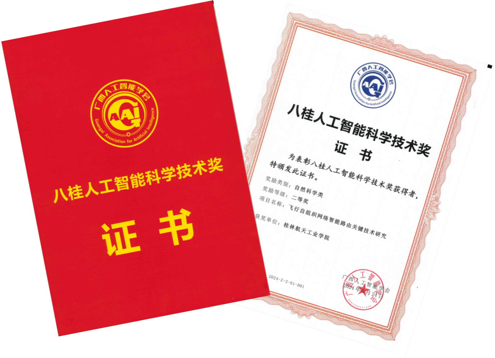 近日,2024年八桂科技讲坛暨广西人工智能学会年会上揭晓了“2024年度八桂人工智能科学技术奖”的评选结果,我校魏星教授团队以学校作为第一单位申报的《飞行自组织网络智能路由关键技术研究》荣获八桂人工智能科学技术奖(自然科学类)二等奖。