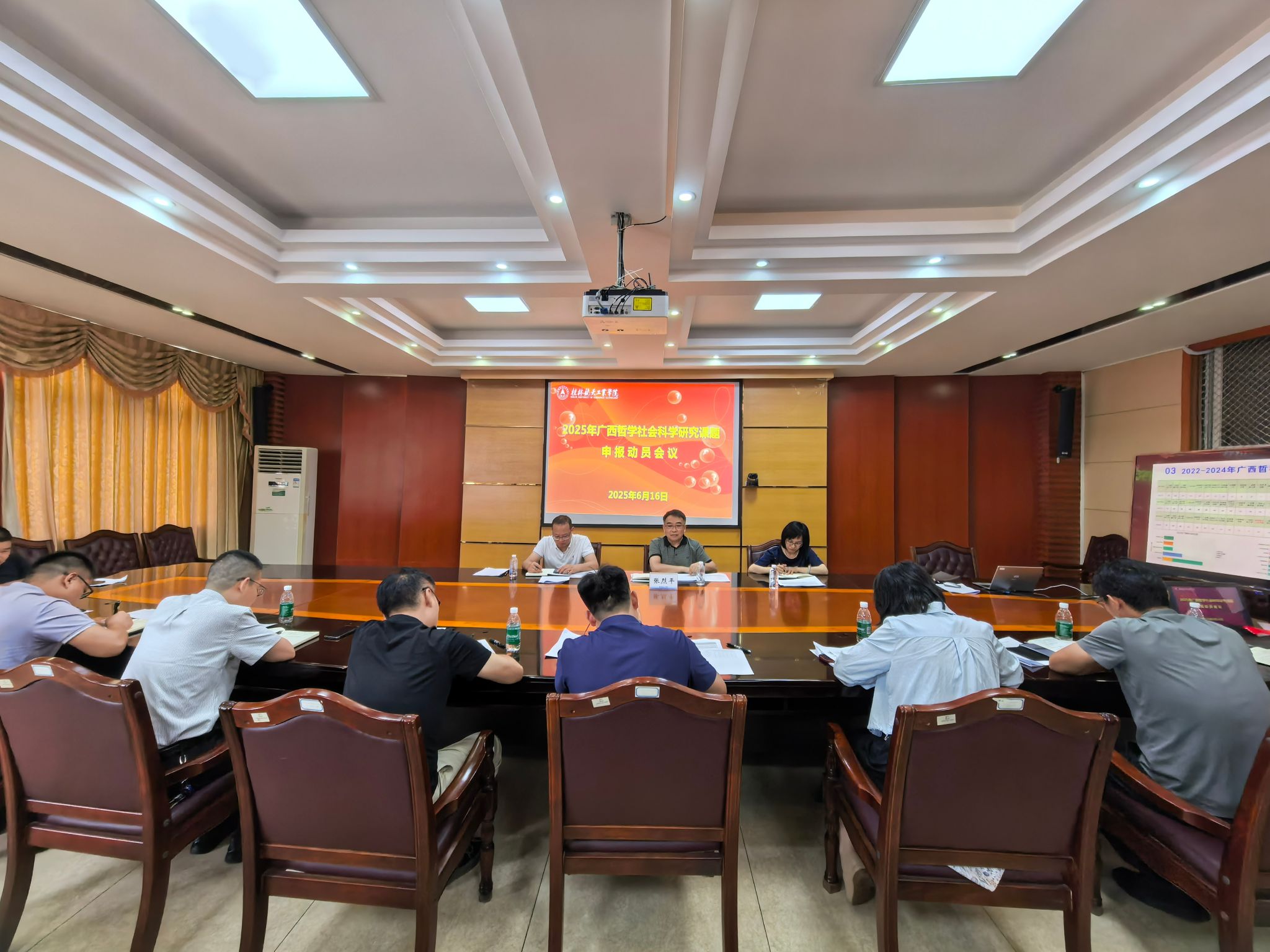 2025年6月16日,学校在飞天楼517会议室召开2025年广西哲学社会科学研究课题申报动员会,副校长张烈平,科技处主要负责人和分管负责人,各教学单位分管科研负责人参加了动员会。会议由科技处主要负责人主持。