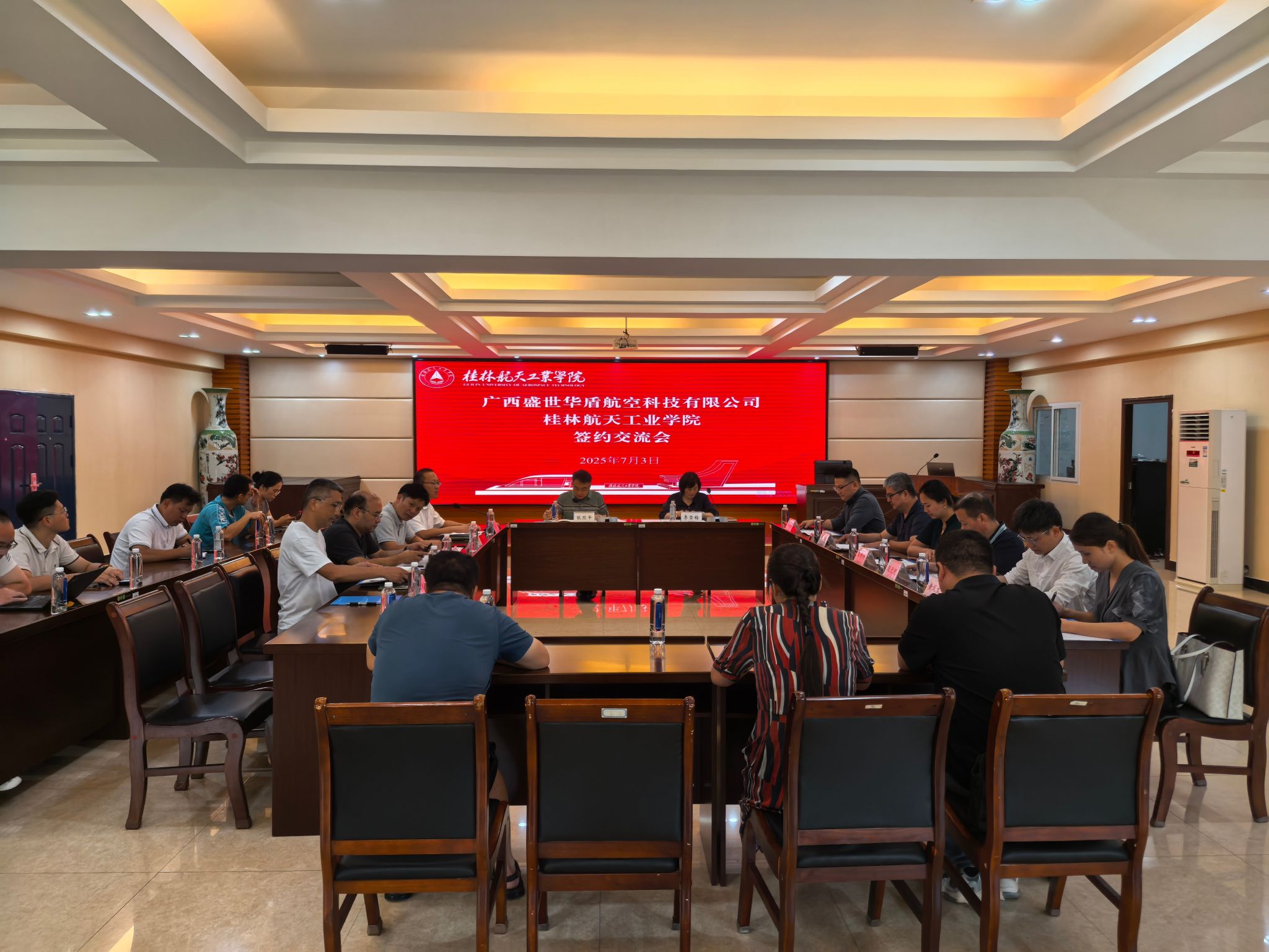 7月3日,广西盛世华盾航空科技有限公司董事长李雪梅率队到访伟德bv1946官网,就深化低空经济与人工智能领域合作开展专题调研。校党委常委、副校长张烈平热情接待来访嘉宾,双方举行座谈交流并签署战略合作协议。科技处、相关学院负责人及教师代表共同参与此次活动。